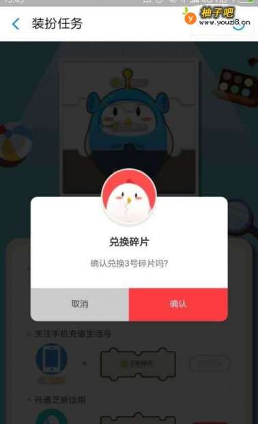 4在任务界面,我们可以看到话费宝宝装扮需要3个碎片来合成。