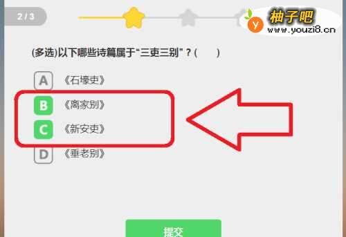 4你需要在第二题选BC,原因是“三吏三别”包括《石壕吏》《新安吏》《潼关吏》《无家别》《新婚别》《垂老别》,没有《离家别》故选