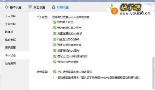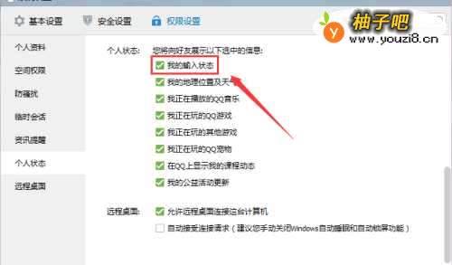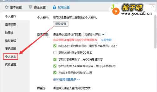 4接着我们就点击左边的“个人状态”选择可以展示的选项