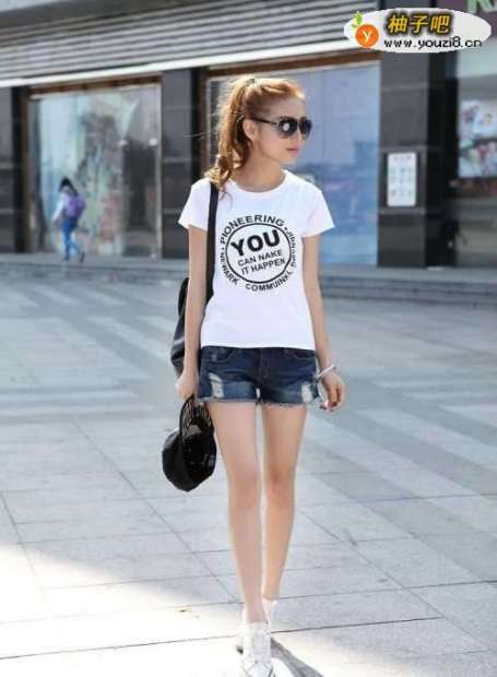 首先,短裤可以搭配纯白色t恤。t恤无论是v领的,圆领的,还是吊带儿的,都能够很好地与牛仔短裤搭配。因为牛仔短裤没有特别深的颜色,所以用纯白色t恤搭配是最能表现穿者风格的。