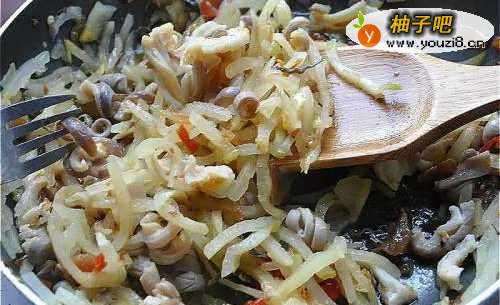 5最后放入包裕适量的XO酱拌炒,将XO酱料拌匀即可。