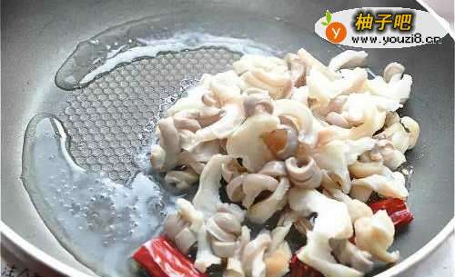 3放入猪肚丝大火拌炒。