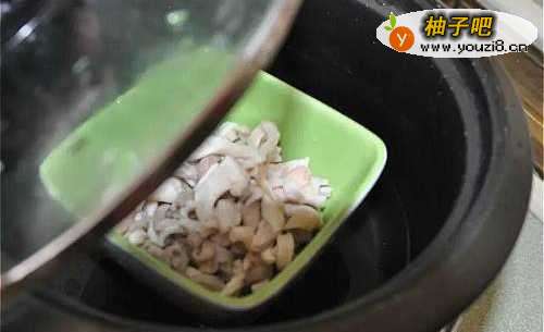 先将猪肚冲处离撤洗切细联凤丝后,泡些米酒及香油,然后放入锅中蒸煮约20分钟。