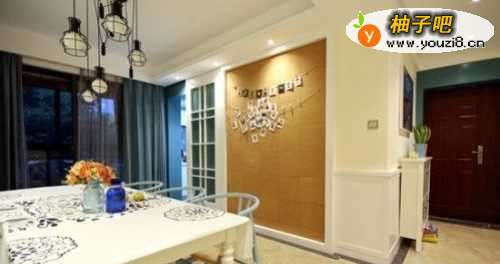 餐厅设计: 餐厅设计成能满足6-8人同时用餐而做的卡座设计,不仅起到了屏风的作用,还使得功能得到满足的前提下更加的有美感。富有艺术气息的吊灯为就餐的时光增添几分浪漫的味道,在独特的就餐环境下,家常便饭也俨然成为高级餐厅里一次次难忘相会。 设置在入口处,体现了主人的好客之美,也是劳累一天后最适合休息的地方。一如家庭餐厅设计的照片墙,是时光的记载,留下亲人们团员的美好,记录朋友聚会时的欢声笑语,他们的痕迹一点点装满了宽阔的餐厅,慢慢地诠释了人们对生活乐观豁达的向上态度。