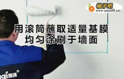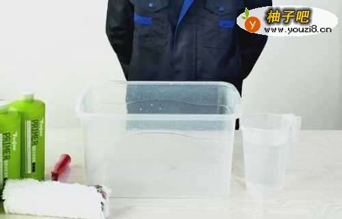 3使用毛刷对倒入水的墙基膜进行2分钟搅拌