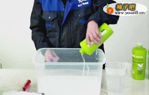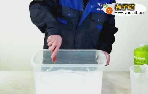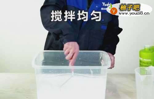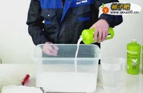 4将后3瓶墙基膜倒入桶内,加入1000ml水进行1分钟搅拌