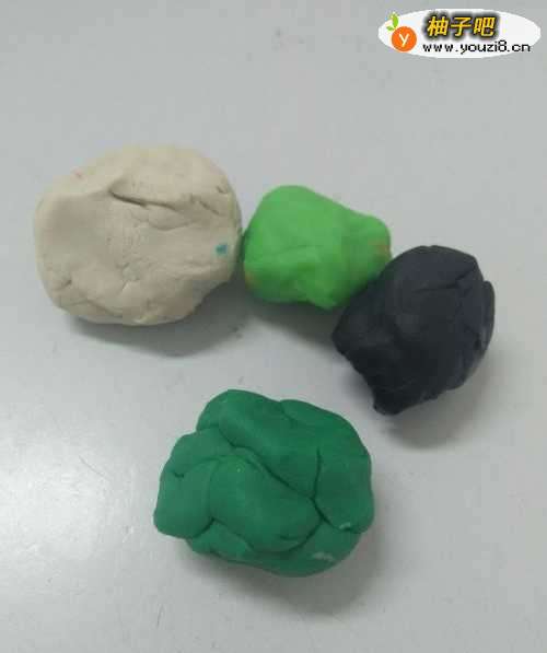 7用深绿色捏四个半圆形,粘在头和身体的背面,当作身后的背脊。