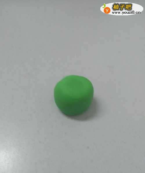 5用浅绿色捏一个圆柱体,粘在头部下面,当作身体。