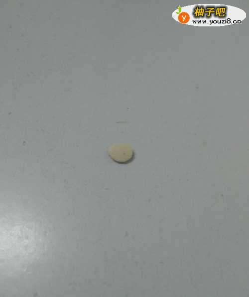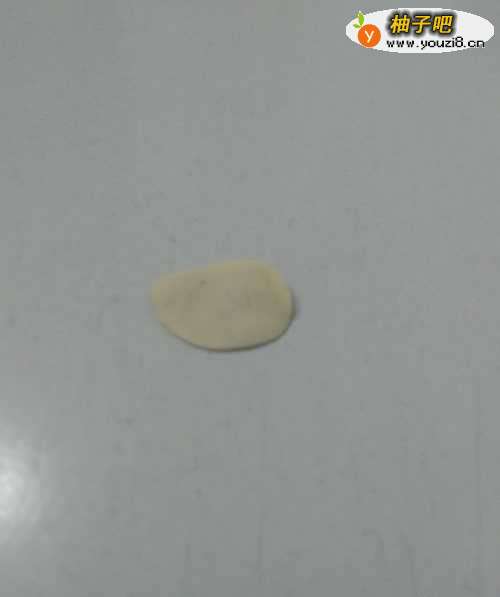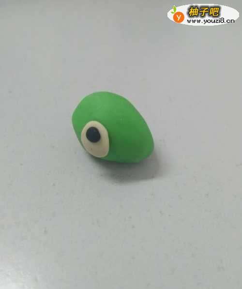 3用白色捏一个小圆片,粘在头上,当作眼睛。
