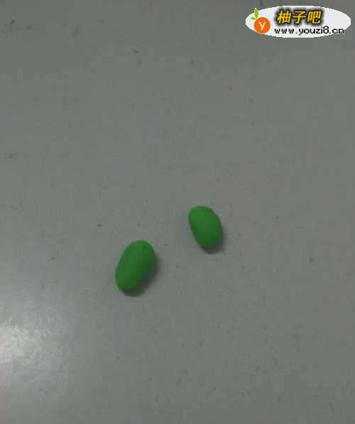 9用浅绿色搓两个小圆条,粘在头下方的两侧,当作两个上肢。