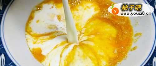 加热30秒呈温热状倒入蛋液里,再次搅拌至混合让酵母化开。