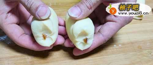 4然后再给它滚几下,像这样就可以了,然后从中间给它切开。