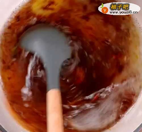 5把煮好的鸡汤凉凉,加入炒化的火锅,盐1小勺,搅拌均匀