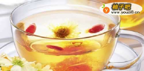 2菊花枸杞茶:杭白菊3克,枸杞子2克,同泡8分钟后饮用。杭白菊有降压作用,与枸杞子搭配沏茶,有解毒明目,安神助眠的功效。