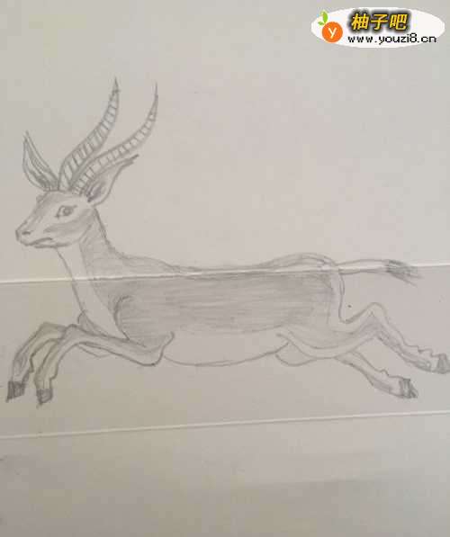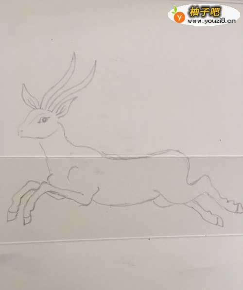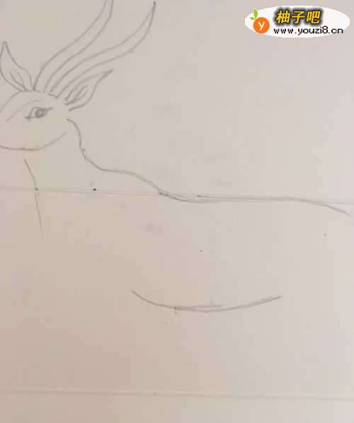 4第三步 先画上羚羊的身子轮廓 轻轻用铅笔勾画简单的线条即可