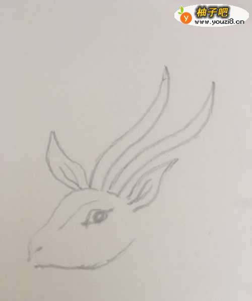 3第三步 再画上羚羊的两个长角 这是羚羊的一个特征 空心而且坚固
