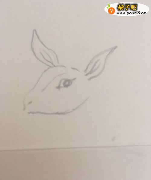 2第二步 先画上羚羊的长耳朵 和大眼睛