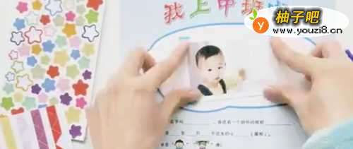 3在对应的位置贴上孩子的照片。