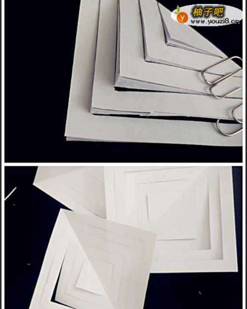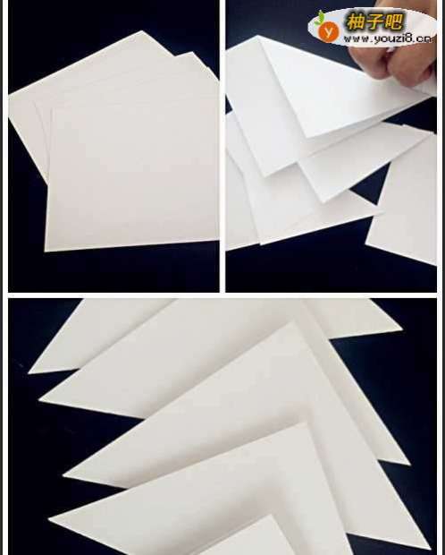 先找来几张纸,裁成正方形,尺寸大小尽量一致,折好的纸不用展开,样式如下图: