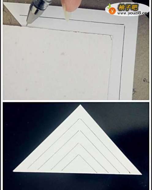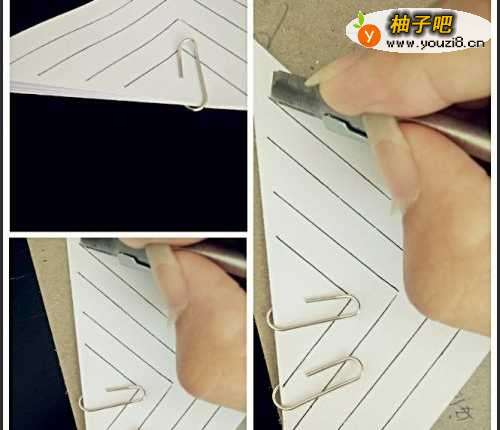 3将剩余的几张纸与刚刚画好线的纸一起固定好,用壁纸刀沿着线划开,需要注意的是不要将线画到头,要与折线有一段距离。