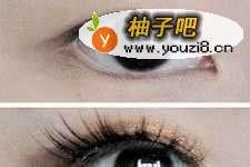 2用棕色眼影如图所示在下眼线注意不要轻描,眼头不晕染,化内眼线,之后加翘睫毛。