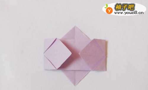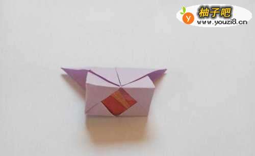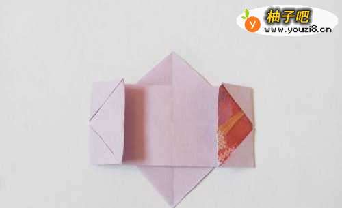 6将两个角向外折叠,塞入一片红色纸。