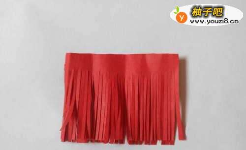 10用红色纸剪流苏。