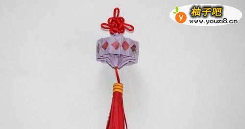 11最后将流苏卷在绳上,用黄色纸做装饰即可。