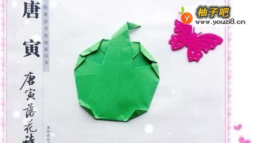 9最后,一个青苹果就成型了。对于苹果整个感觉觉得不满意,就试着进行微调。相信你也可以折出一个这么可爱的小苹果。