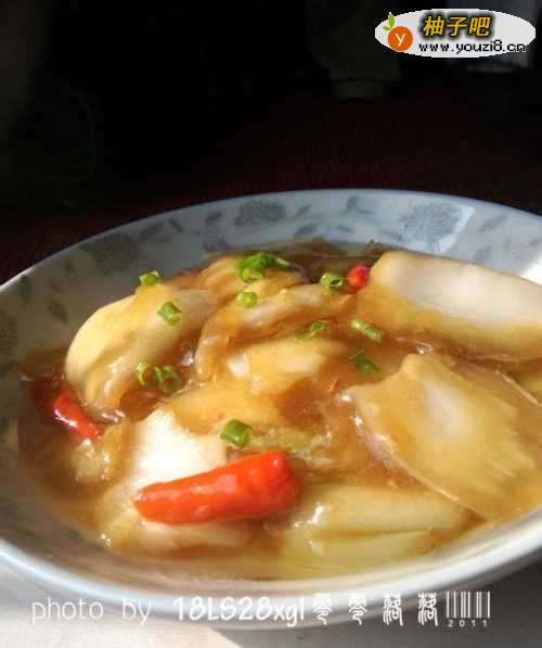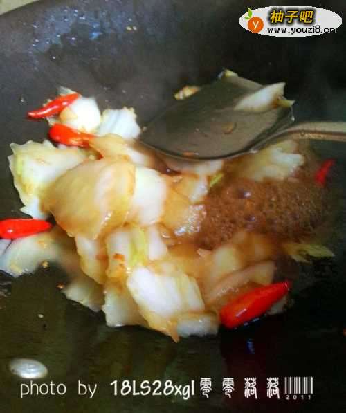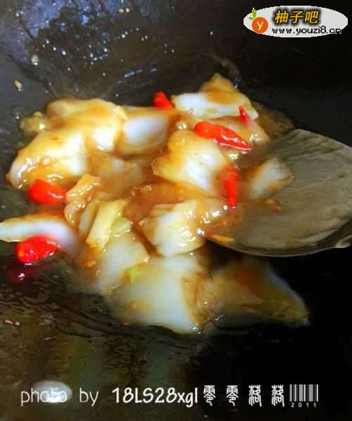 7白菜邦熟了之后,调入水淀粉,淋入香油即可。