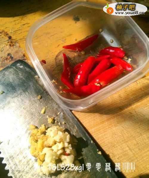 2姜蒜洗净,切末;小米辣洗净,切斜段;