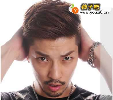8打造无刘海发型的手法确实有很多,不愿意把刘海都拨到脑后的男生也可以利用侧分造型,把刘海定型在一侧,呈现出分明的棱角。