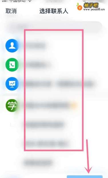 5切换到选择联系人页面中点击“要邀请好友的发起视频会议方式”再点击“确定”按钮。