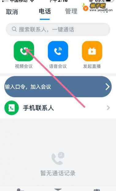发起视频会议:1、点击“顶置的电话”小图标,点击“视频会议”选项 2、点击“开始会议”选项,点击“要邀请好友的发起视频会议方式”再点击“确定”按钮。结束视频会议:在视频的拍摄页面中点击“挂断电话”小图标,点击“结束会议”选项。