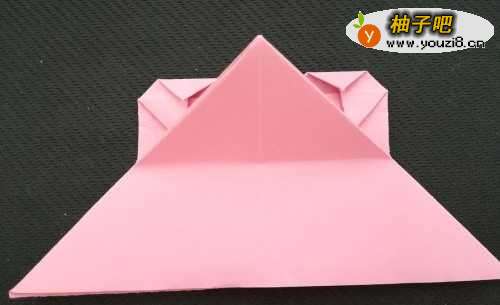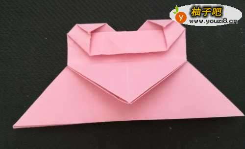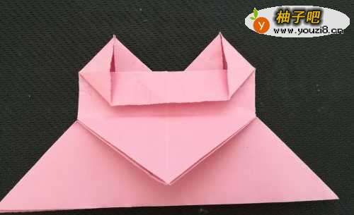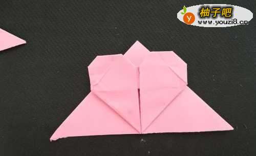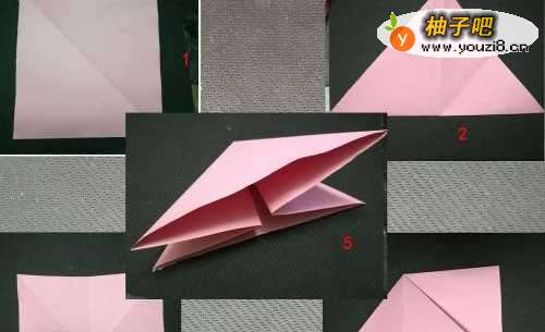 准备好一张正方形彩纸,因为是七夕,彩纸用代表爱情的红色或者是印有与爱情有关的图案的彩纸。按照步骤顺序折到第五个步骤。
