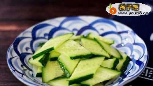 4黄瓜切成菱形小块,放在小碟子中