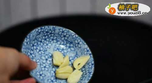6先放入蒜苗翻炒