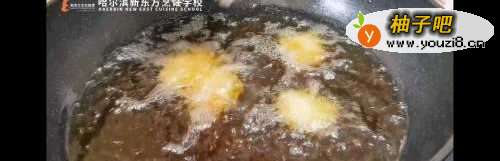 7六成热时放入鱼肉,炸至外酥里嫩后捞出