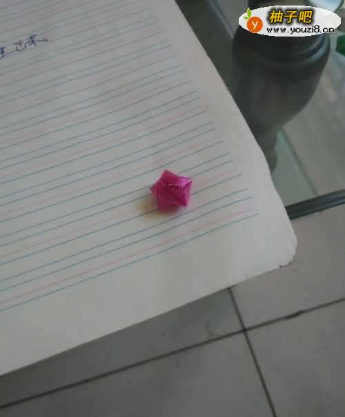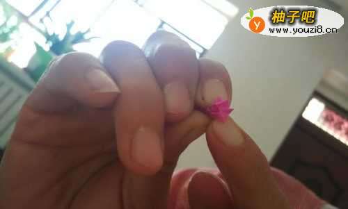 55,然后将对折后的管子,要先把星星的几个角先捏出来。