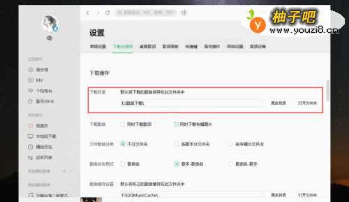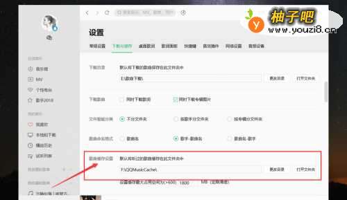 7往下看一点,我们就能看到歌曲缓存设置了,跟上面一样。我们可以把这个目录放到我们平时容易找到的位置,这样后期容易清理无用的了