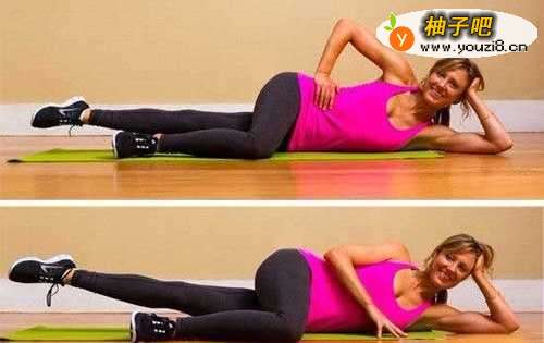 练习的时候,能带动大腿内侧肌肉组织同时运动。侧躺,将挨着地板的腿伸展抬起,上面的腿部进行交叉放于地板上。左手支撑头部,右手叉腰,呼气时,抬腿,吸入时再降低下来,如此反复。