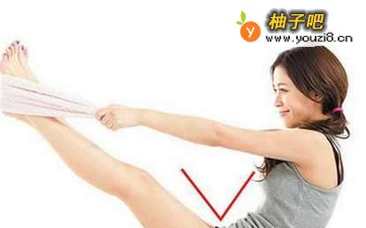 能快速燃烧大腿脂肪。弯曲腿部和膝盖,两手手掌合在一起向前延伸。将胸部对着膝盖。脚尖踮起来,保持腿的动作不变。