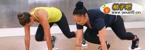 锻炼腹部和腿部的肌肉,特别是大腿内侧。用两条小毛巾折成方状,左右两只脚的脚尖踩上。双手撑在地上,右腿回来,然后与左腿快速切换,就像一个登山者在一直爬呀爬。
