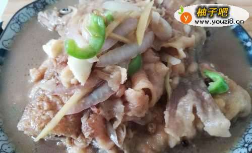 5开盖后,大火收汁,汤汁渐少后,加入青椒、洋葱、蒜末,搅匀即可关火。