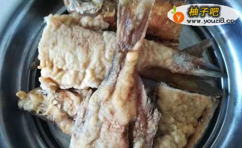 炸好的鱼有些大,切成两半,炖的时候更易入味。