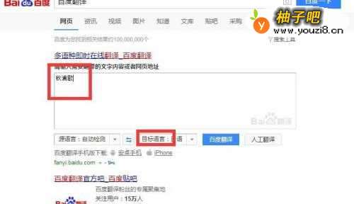 4此时我们在网页的第一项找到百度翻译,输入“秋浦歌”,如图