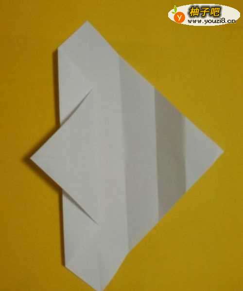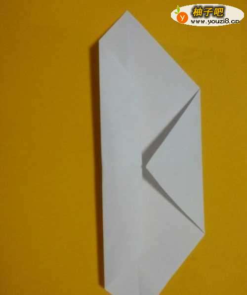 5向外伸出的两个三角,分别向内折个小角,如图所示。把最上面的袋子打开。