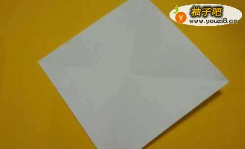 将一张正方形的纸沿对角线对折后,展开,然后正方形相对的两个角向中间折,压平,如图所示。