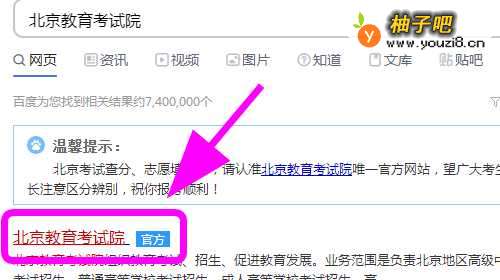 2在搜索框中输入【北京教育考试院】,并点击搜索结果中的【北京教育考试院】网站;