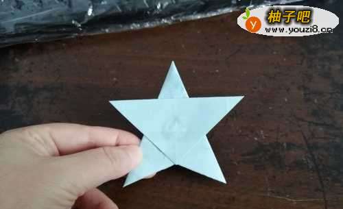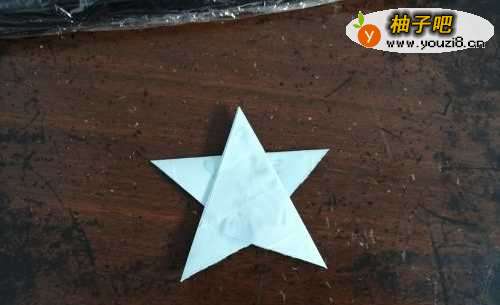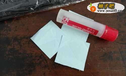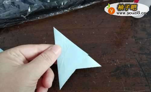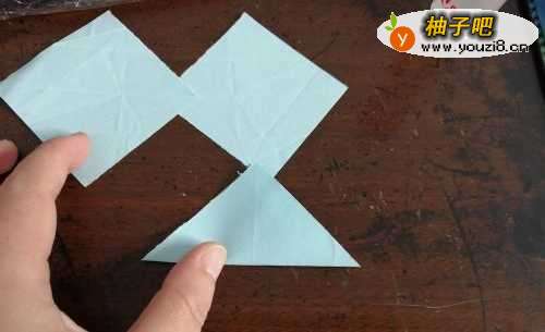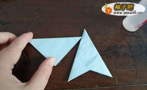 4把另一个三角形倒放着,把它放在折纸的正中间用胶水固定。